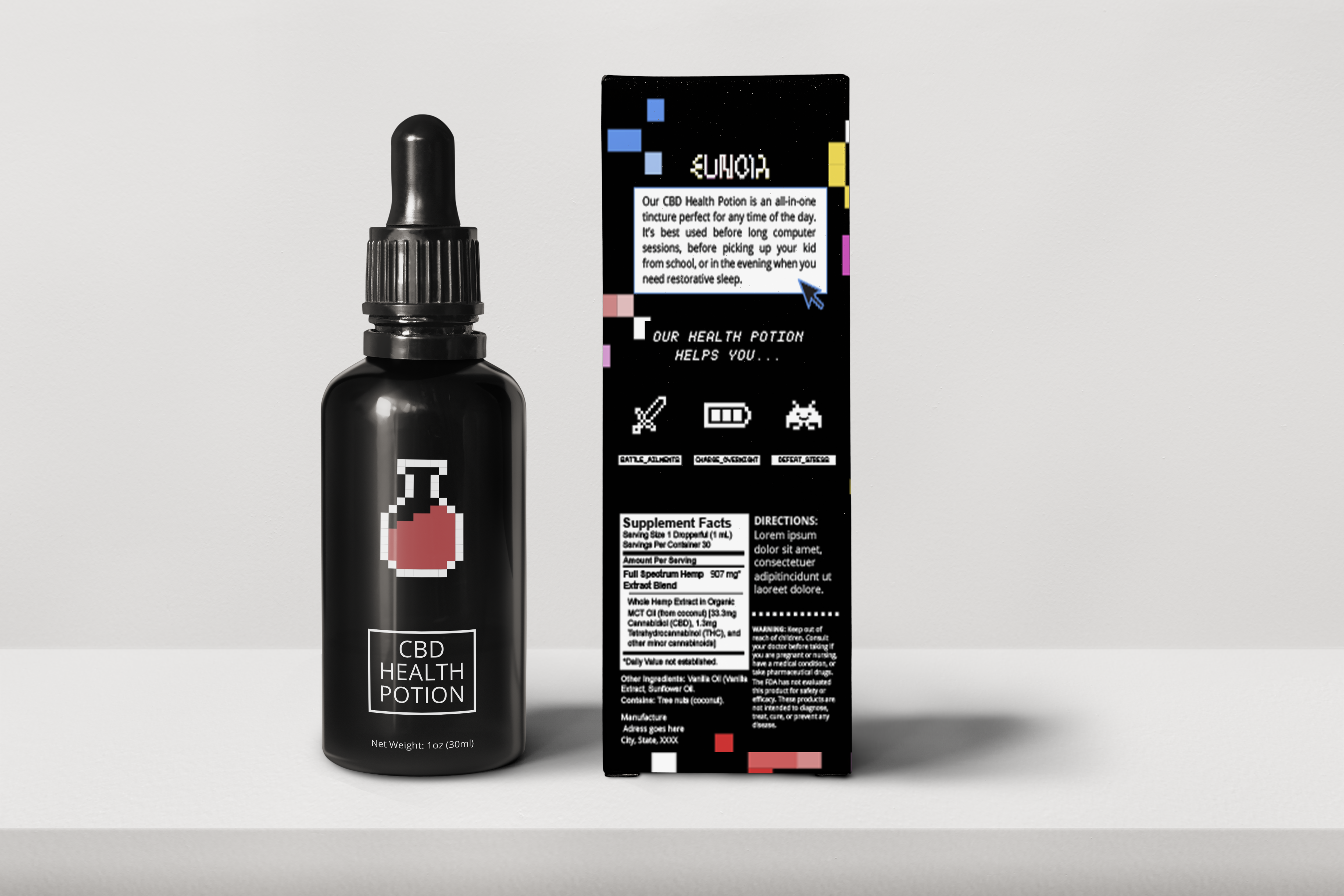 Designed a package for a CBD tincture that aims to target gamers.