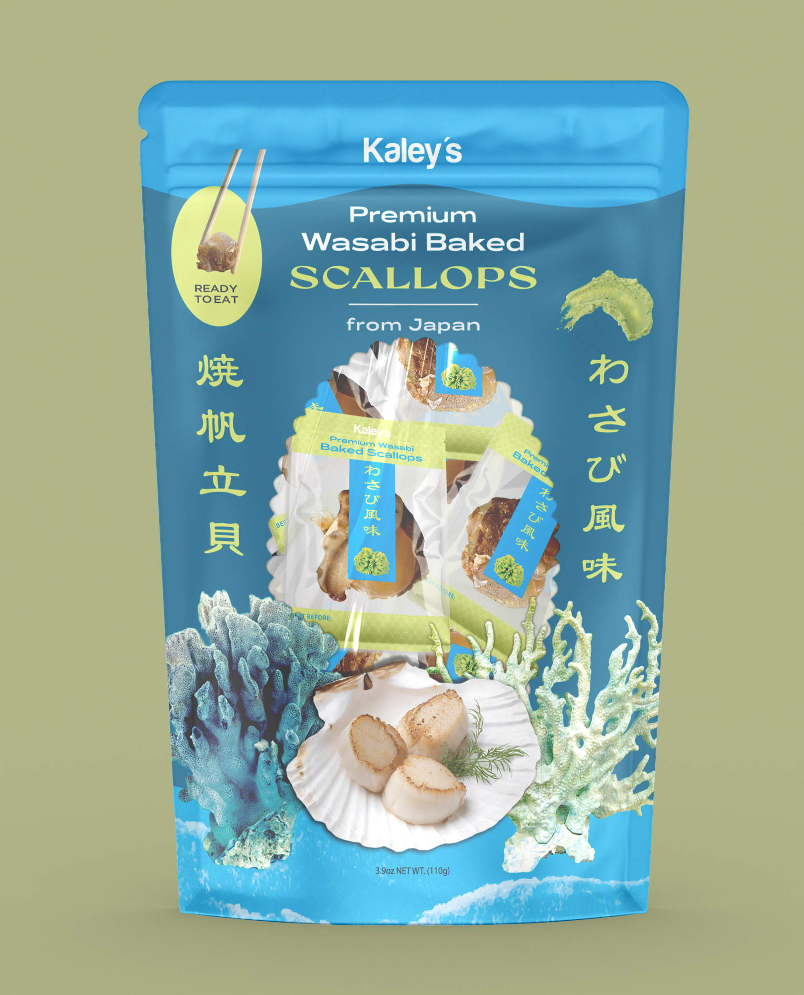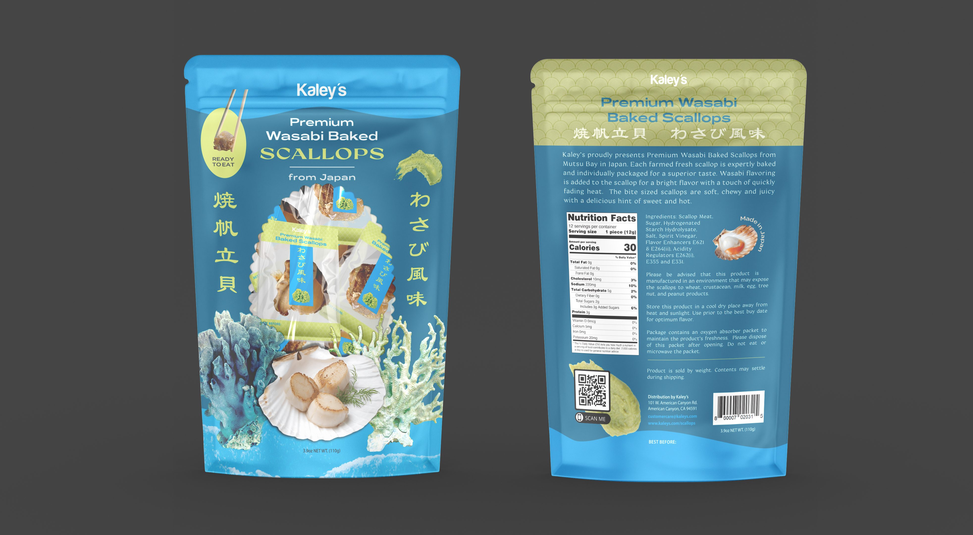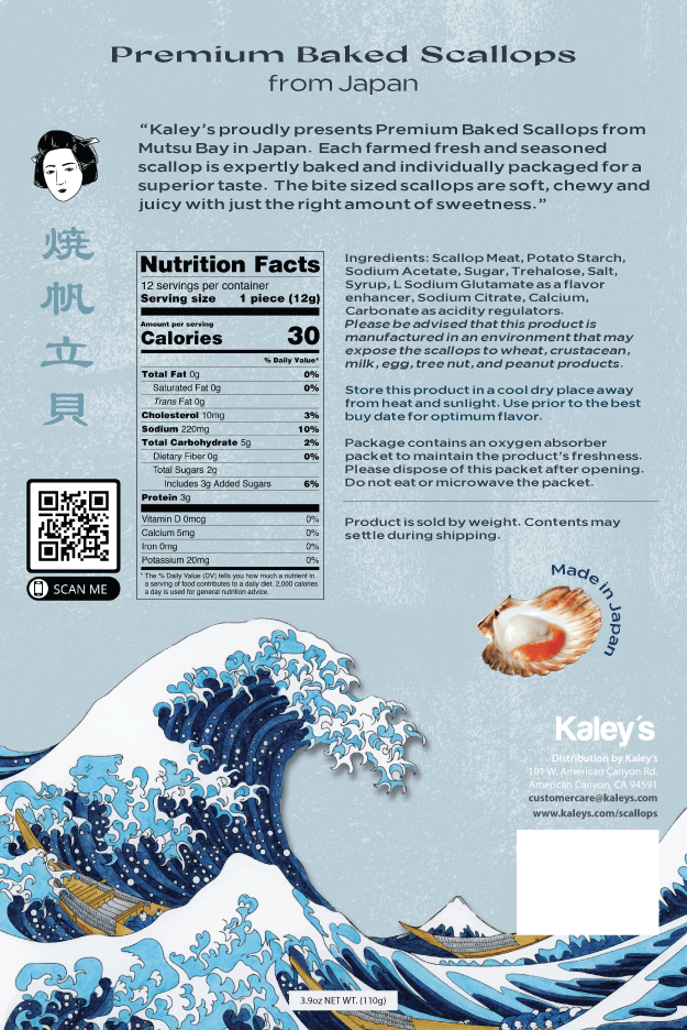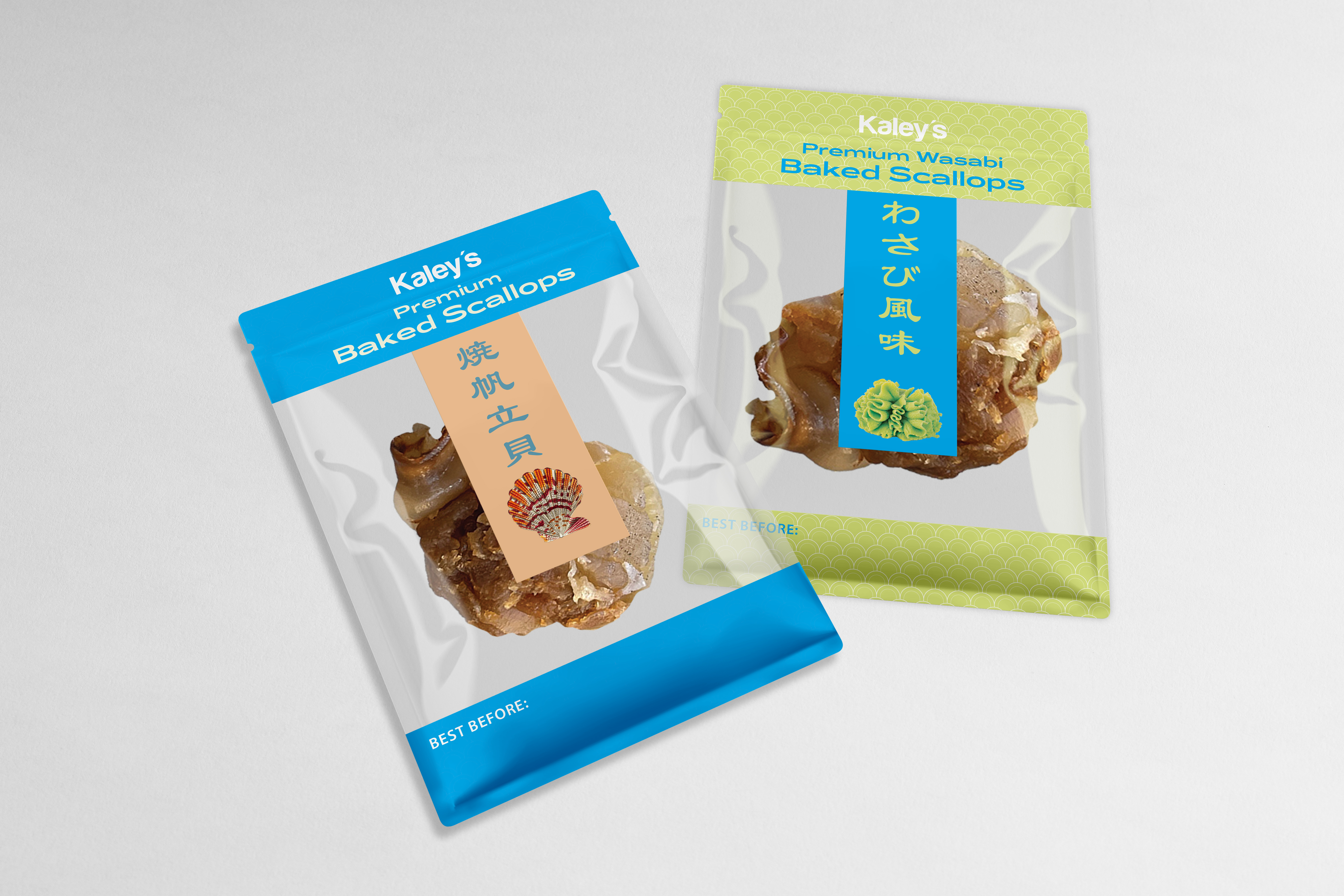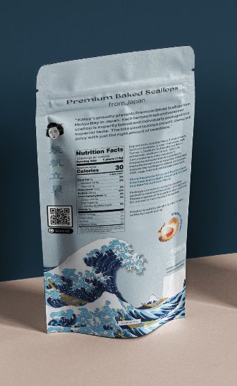 Redesigned packaging for Kaley’s dried scallops to better appeal to customers.