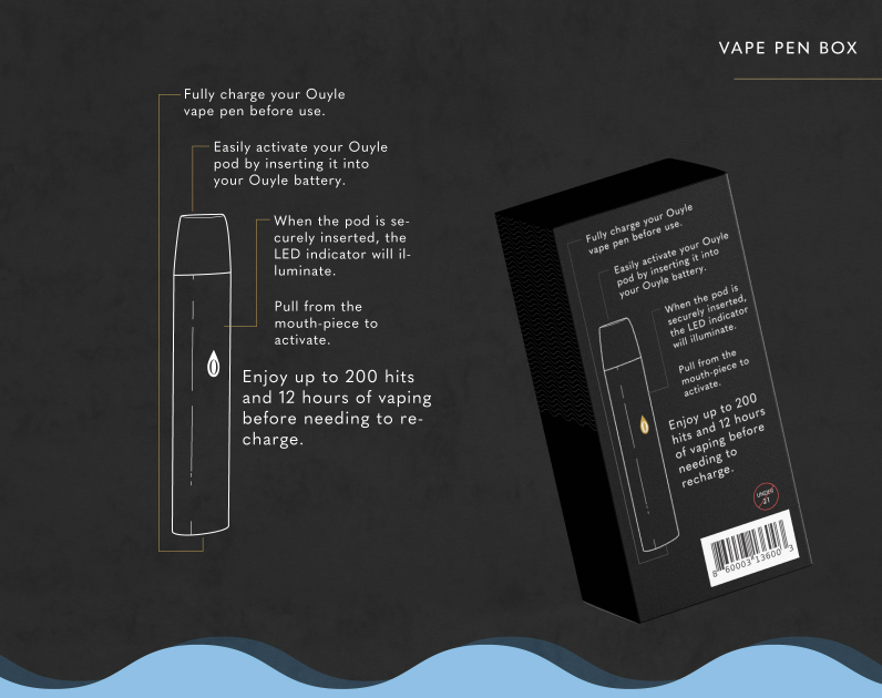 Designed a sleek package design for a trendy CBD vape pen box as well as a package design for a dynamically shaped cartridge case.